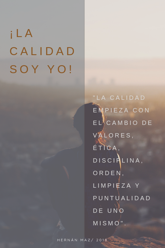 Para lograr la calidad de sus productos y/o servicios, de sus procesos y de su organización en general de forma sostenible y real, comience cambiado usted mismo. Una vez logre ese cambio y sea capaz de transmitirlo, la implantación de sistemas de gestión y/o indicadores; será exitoso, puesto que ya tiene lo fundamental listo, las personas.